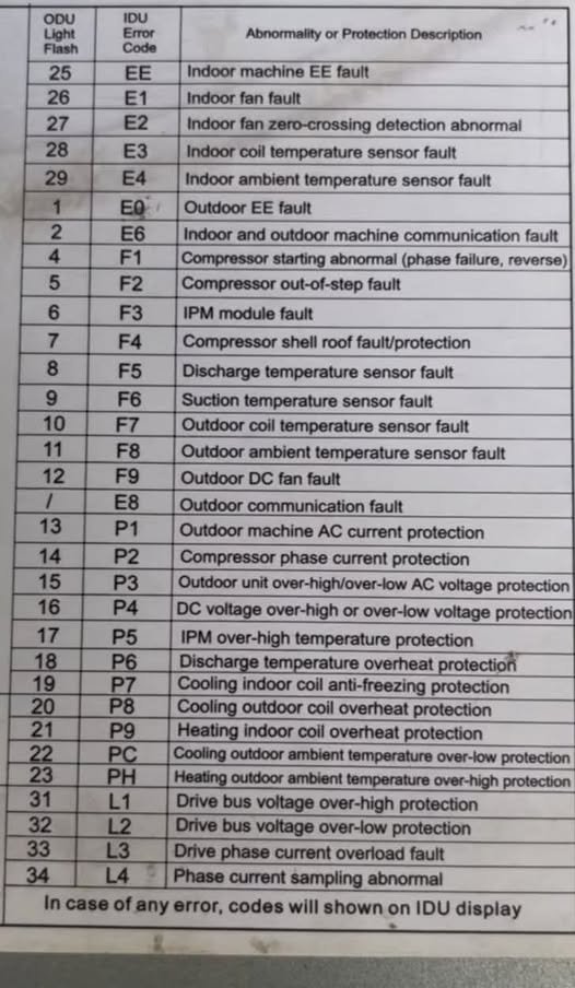 MARQ INVERTER AC ERROR CODE